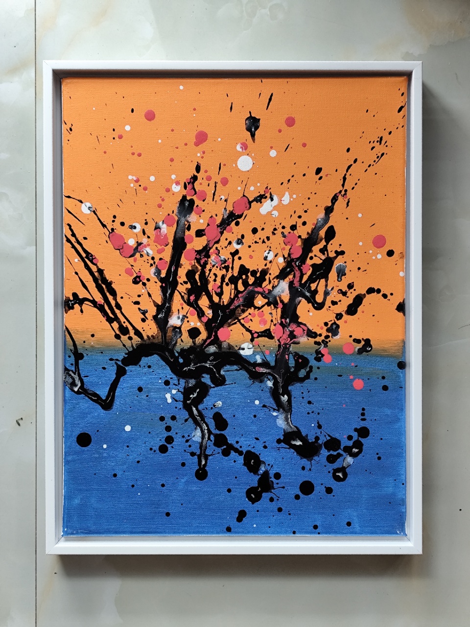 The core inspiration is the plum blossom, which transforms the elegant imagery of "plum blossoms braving the snow" in traditional literati painting into the highly modern and dynamic language of abstract expressionism (Action Painting). Through bold color contrasts and impromptu ink splashes, the painting expresses the tenacious and vibrant vitality of the plum blossom.
